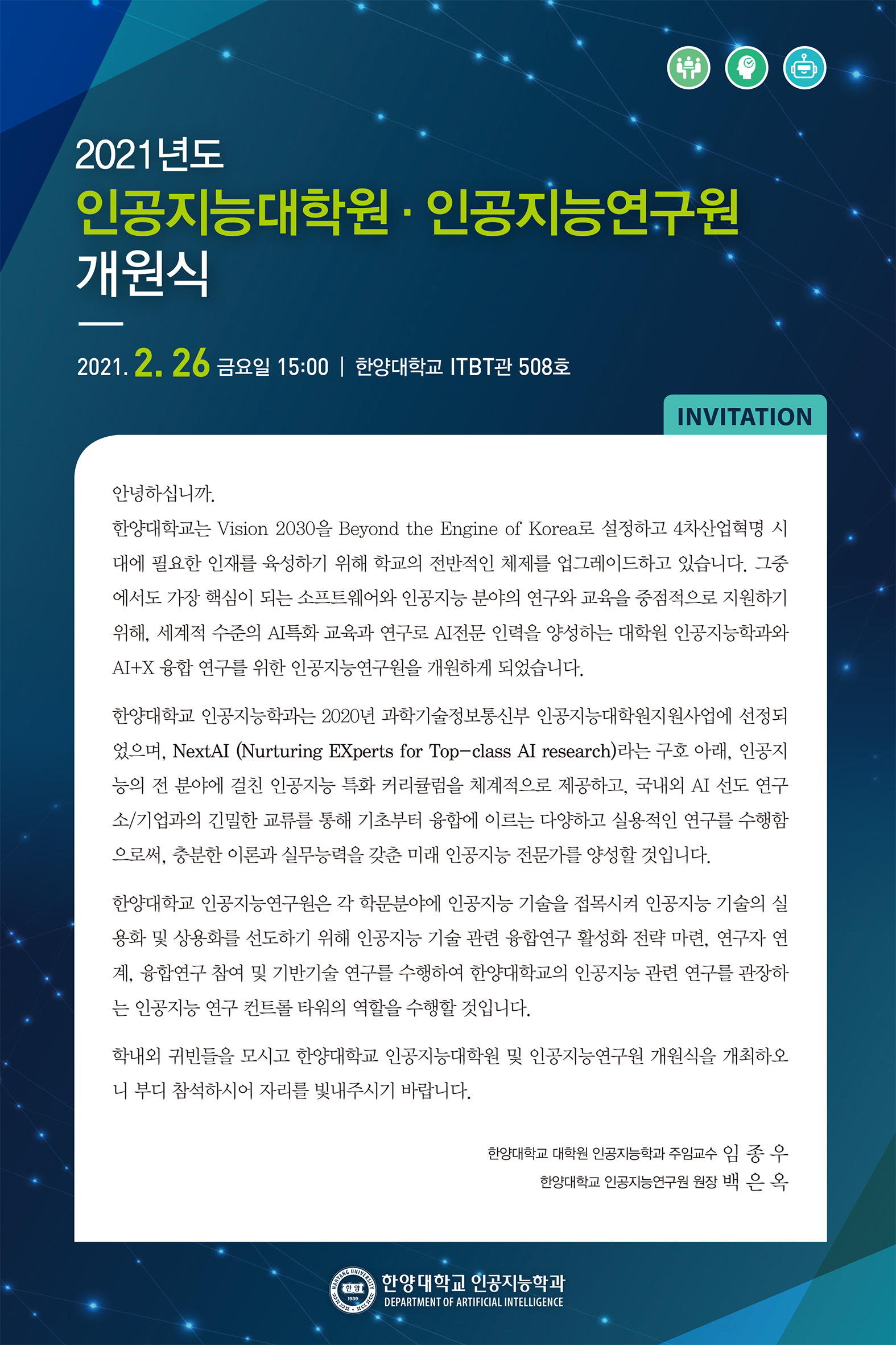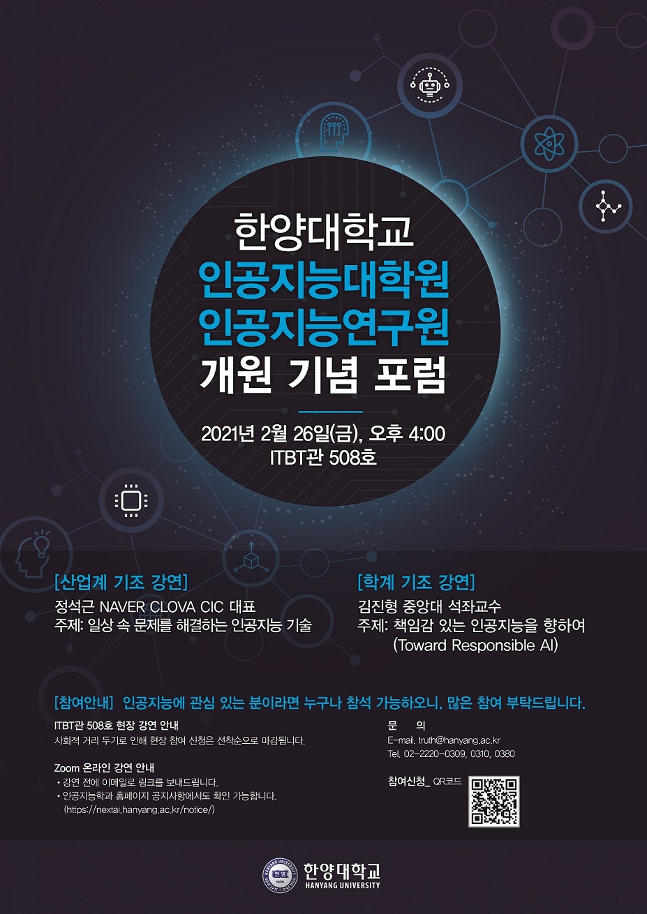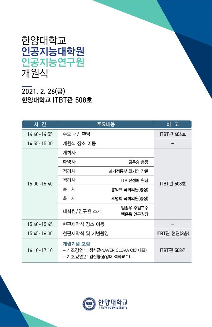 Á¦¸ñ [21.02.26(±Ý)] AI´ëÇпø&AI¿¬±¸¿ø °³¿ø½Ä ¹× ±â³ä Æ÷·³, ÇѾç´ëÇб³ ITBT°ü